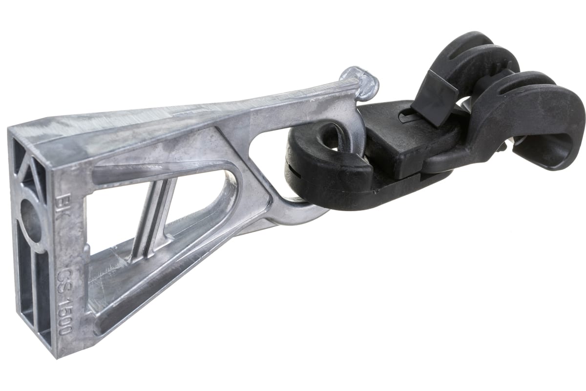 Комплект промежуточной подвески ES 54-14 P - ВК используется на угловых и промежуточных столбах и может обеспечивать надежное крепление проводов СИП с углом до 60 градусов.